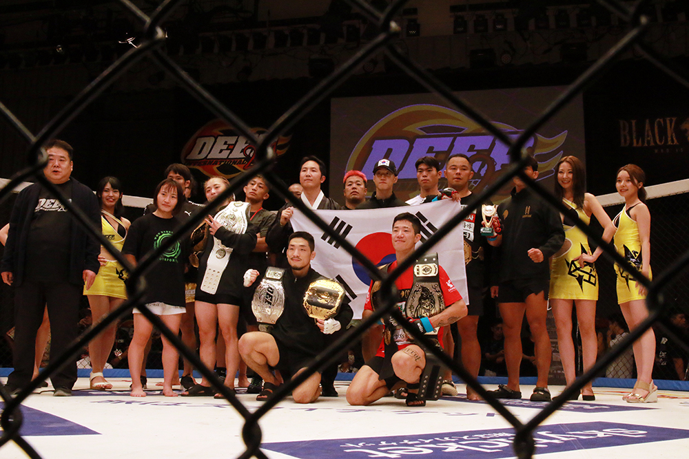 현역 소방관 윤호영(33,킹덤주짓수)은 일본 유도 엘리트 출신의 플라이급 4위 코마키네 타카히로(33, 일본)에게 서브미션을 허용, 타이틀 획득에 실패했다. 밸런스를 흔든 뒤 던지는 목감아 던지기와 다리를 사용하는 덧걸이 등 유도식 테이크 다운에 끌려다니며 1R을 내줬던 윤호영은 테이크 다운 후 백과 상위, 스탬핑을 성공, 어느 정도 만회를 하는 듯 보였다. 그러나 3R 무리하게 던지기를 시도하다 깔려버린 윤호영은 암 바를 캐치, 버텼으나 탭을 쳐야만 했다.