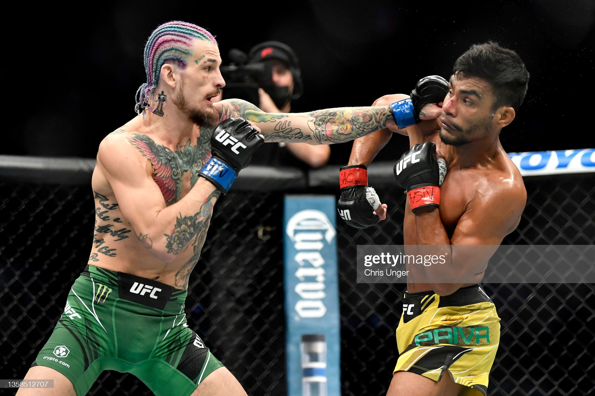 [난타전에서 페냐가 누네즈에게 펀치를 성공시키고 있다]