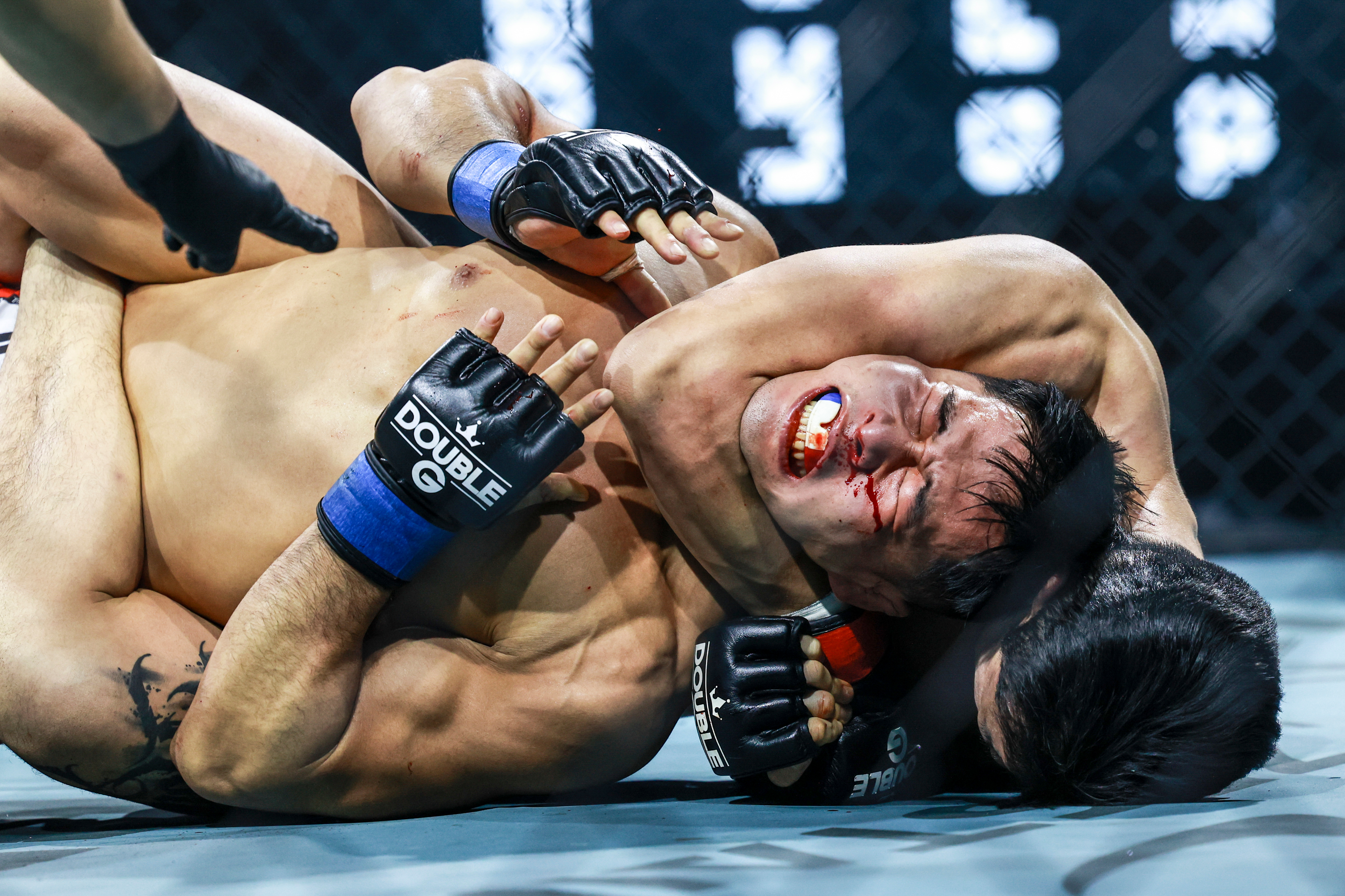 [윤다원의 백초크에 이경섭이 괴로워하고 있다]